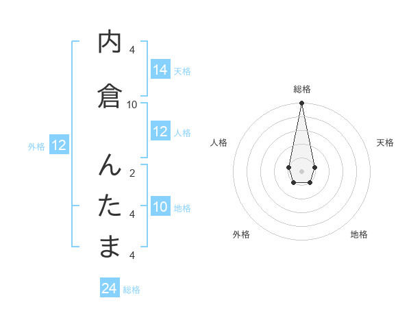 内倉 んたまさんの総格は24画の5点!