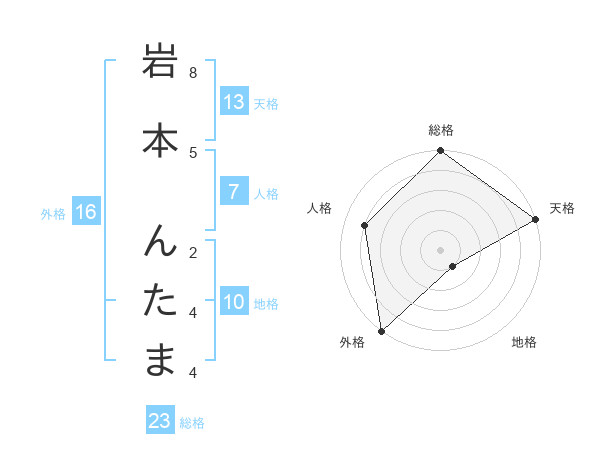 岩本 んたまさんを姓名の画数から五運を鑑定