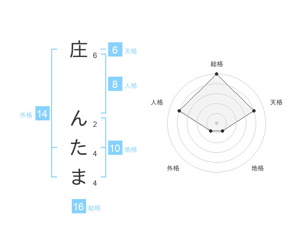 庄 んたまさんの総格は16画の5点!