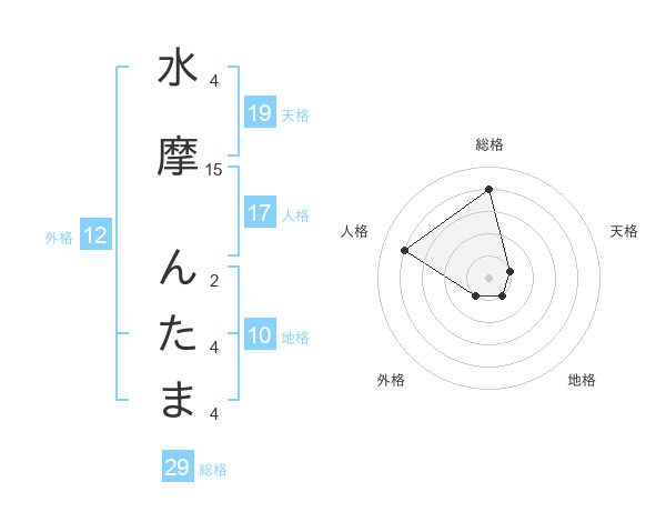 水摩 んたまさんの総格は29画の4点!
