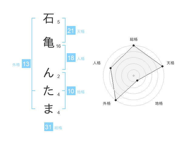 石亀 んたまさんを姓名の画数から五運を鑑定