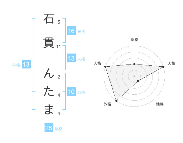 石貫 んたまさんの外格は13画の5点!