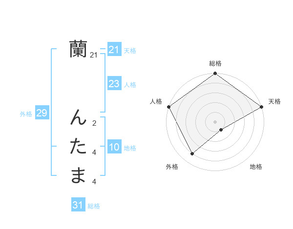 蘭 んたまさんの総格は31画の5点!