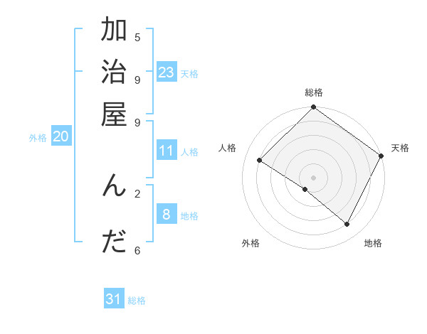 加治屋 んださんの総格は31画の5点!