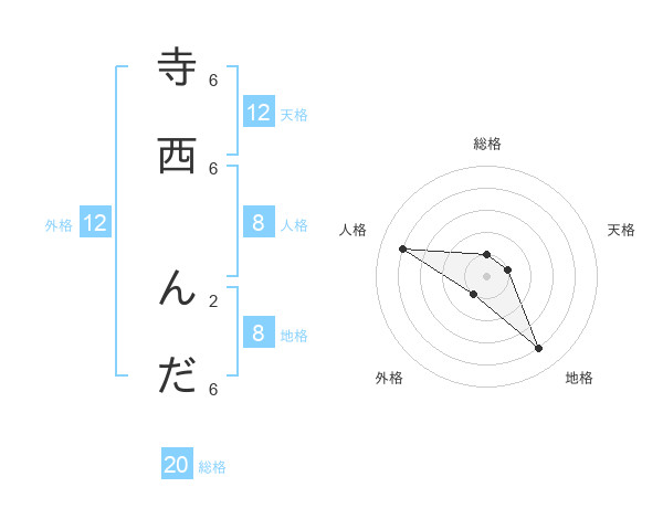 寺西 んださんの総格は20画の1点!
