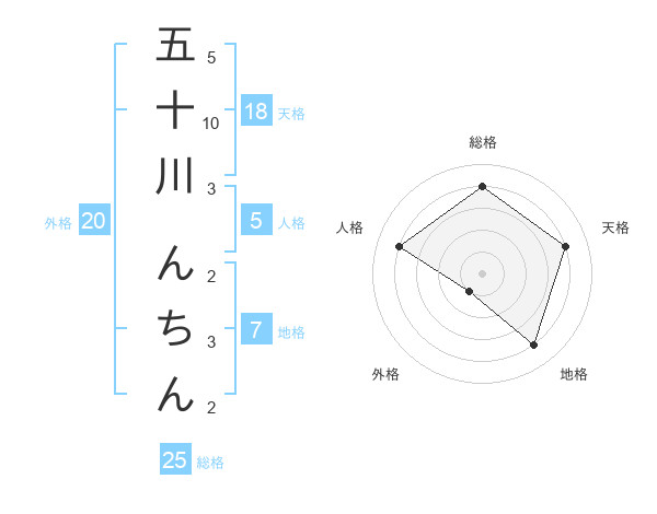 五十川 んちんさんの総格は25画の4点!