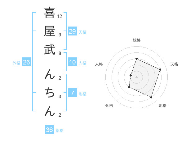 喜屋武 んちんさんの天格は29画の4点!
