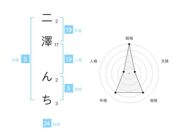 二澤 んちさんの総格は24画の5点!