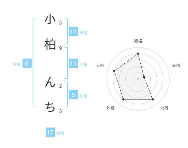 小柏 んちさんの総格は17画の4点!