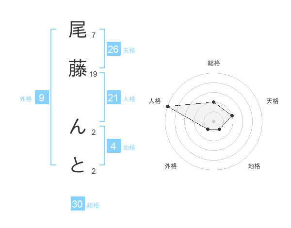 尾藤 んとさんを姓名の画数から五運を鑑定