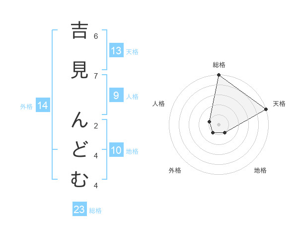吉見 んどむさんの天格は13画の5点!