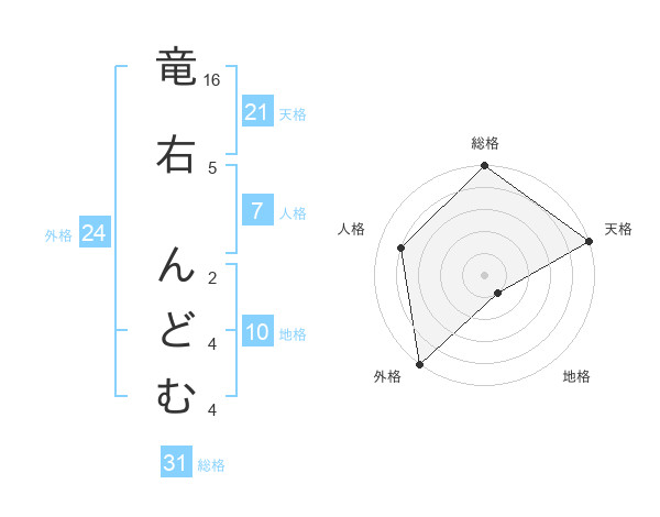 竜右 んどむさんの総格は31画の5点!
