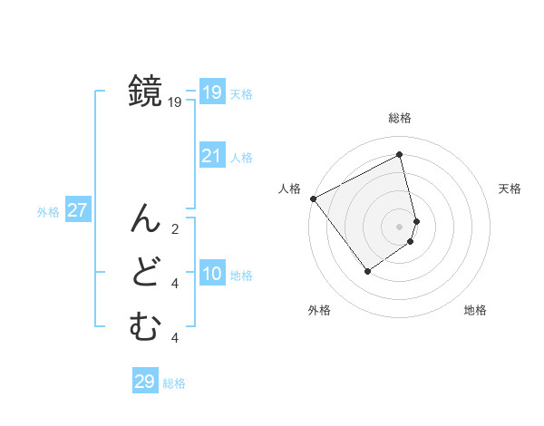鏡 んどむさんの総格は29画の4点!
