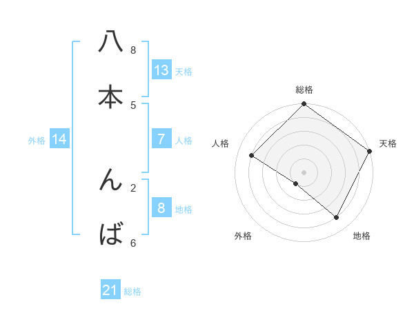 八本 んばさんの天格は13画の5点!