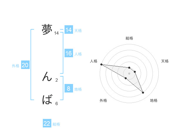 夢 んばさんの総格は22画の1点!