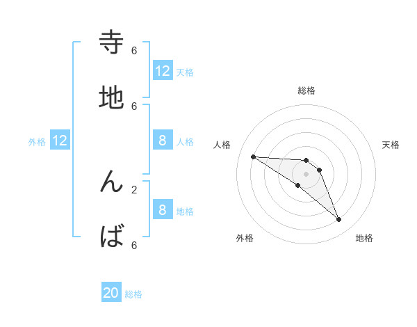 寺地 んばさんの総格は20画の1点!