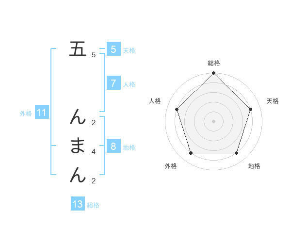 五 んまんさんの総格は13画の5点!