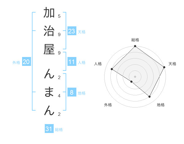 加治屋 んまんさんを姓名の画数から五運を鑑定