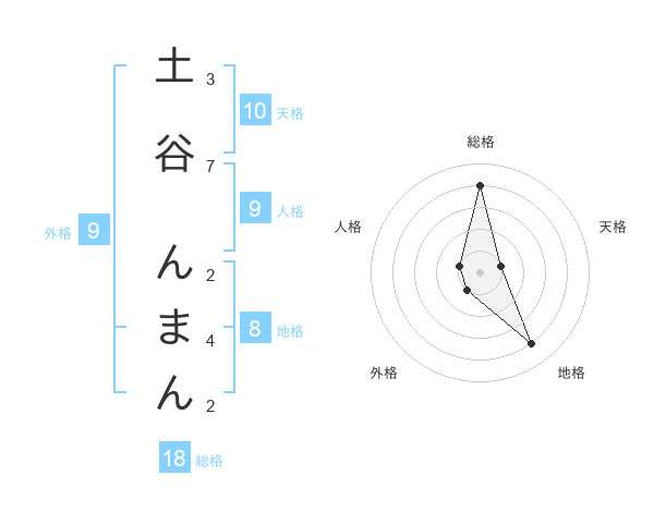 土谷 んまんさんを姓名の画数から五運を鑑定
