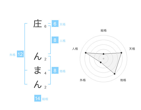 庄 んまんさんの地格は8画の4点!