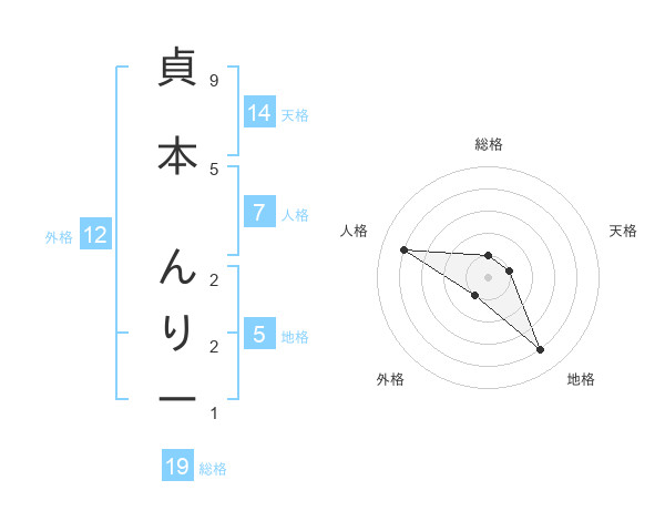 貞本 んりーさんを姓名の画数から五運を鑑定