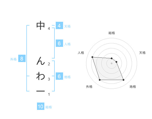 中 んわーさんの地格は6画の4点!