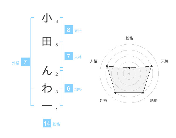 本サイトの鑑定結果の正当性は保証しません。鑑定結果は参考程度にお読みください。実際の名づけにご利用される場合は、姓名判断についてご自身でよくお調べください。