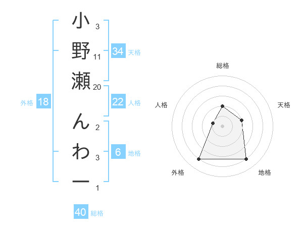 小野瀬 んわーさんを姓名の画数から五運を鑑定