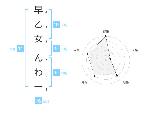 早乙女 んわーさんの総格は16画の5点!