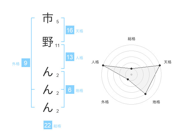 市野 んんんさんの総格は22画の1点