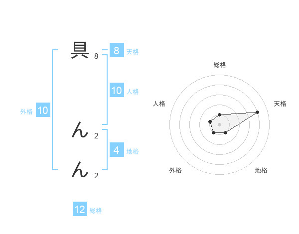 具 んんさんの総格は12画の1点!