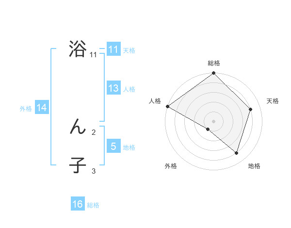 浴 ん子さんの総格は16画の5点!
