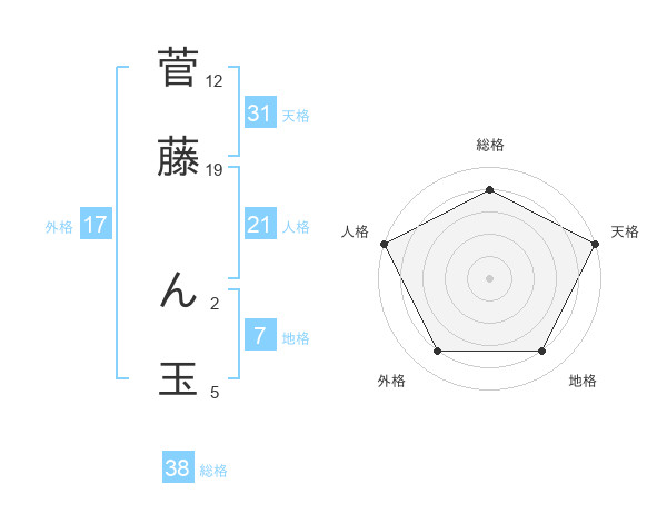 菅藤 ん玉さんの総格は38画の4点!