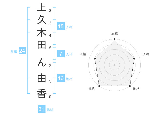 上久木田 ん由香さんの外格は24画の5点!