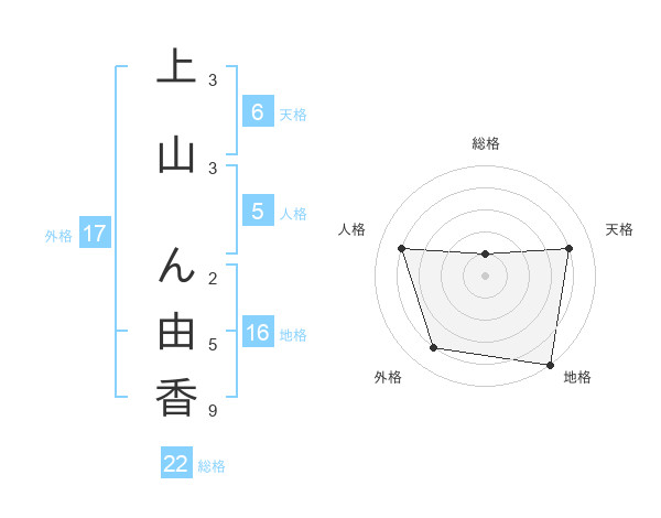 上山 ん由香さんを姓名の画数から五運を鑑定