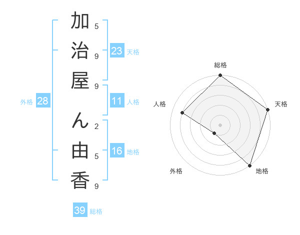 加治屋 ん由香さんを姓名の画数から五運を鑑定