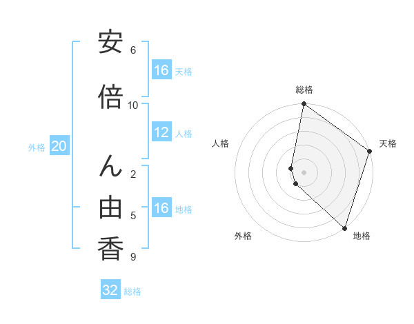 安倍 ん由香さんを姓名の画数から五運を鑑定