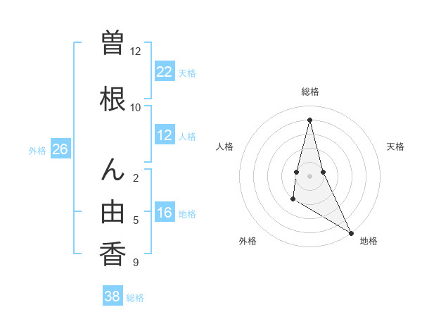 曽根 ん由香さんを姓名の画数から五運を鑑定