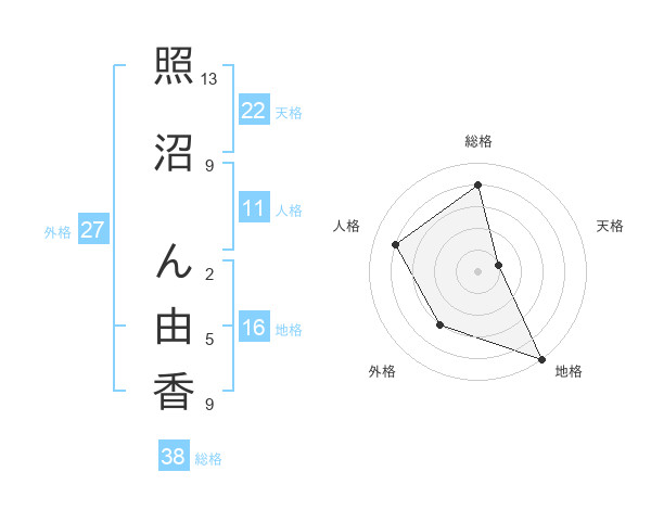 照沼 ん由香さんを姓名の画数から五運を鑑定