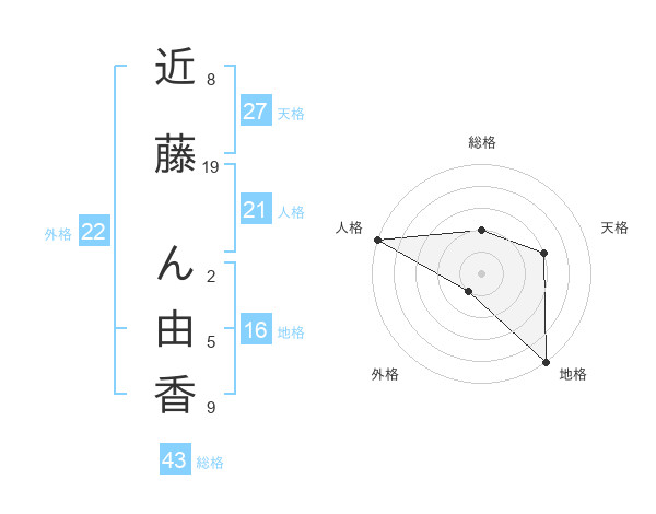 近藤 ん由香さんを姓名の画数から五運を鑑定