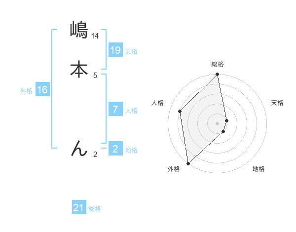 嶋本 んさんの総格は21画の5点!