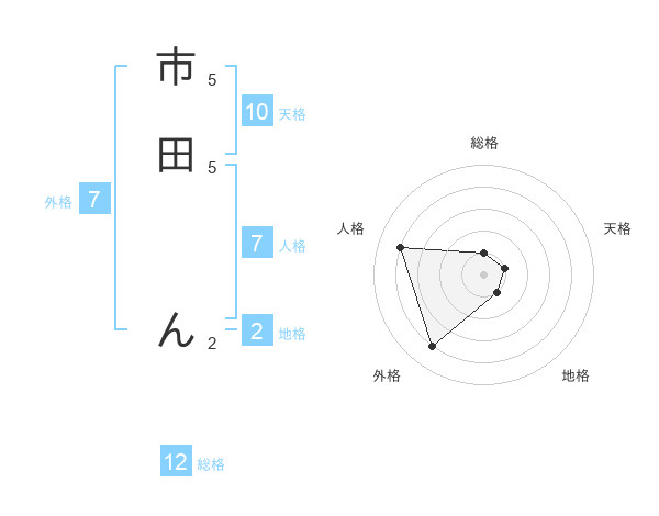 市田 んさんの総格は12画の1点!