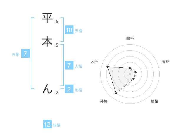 平本 んさんの外格は7画の4点!