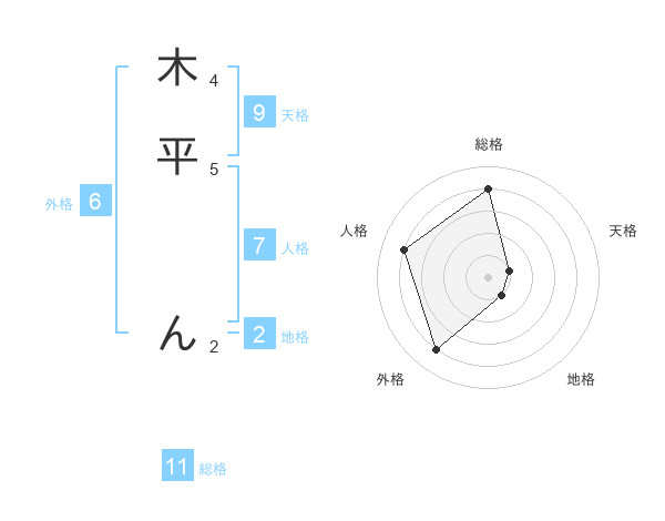 木平 んさんの総格は11画の4点!