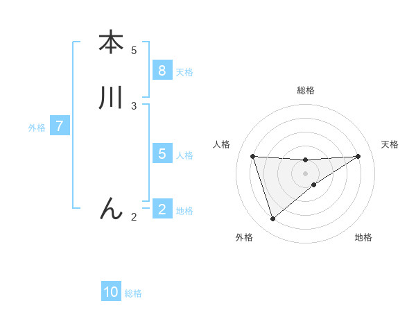 本川 んさんの天格は8画の4点!