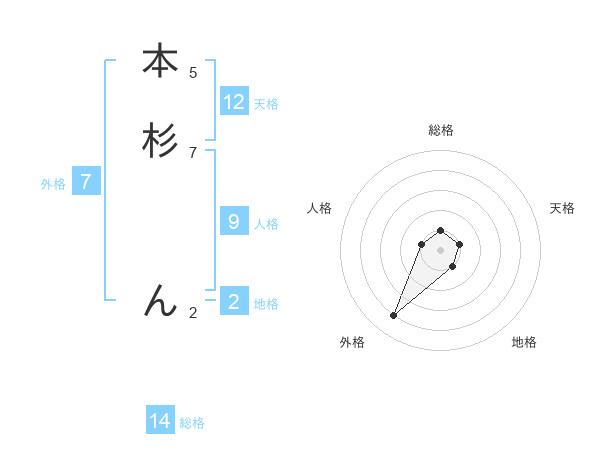 本杉 んさんの天格は12画の1点!