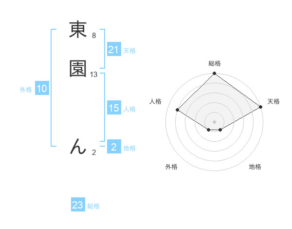 東園 んさんの総格は23画の5点!