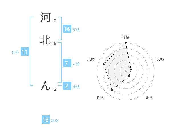河北 んさんの総格は16画の5点!