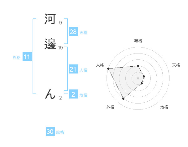 河邊 んさんの総格は30画の2点!
