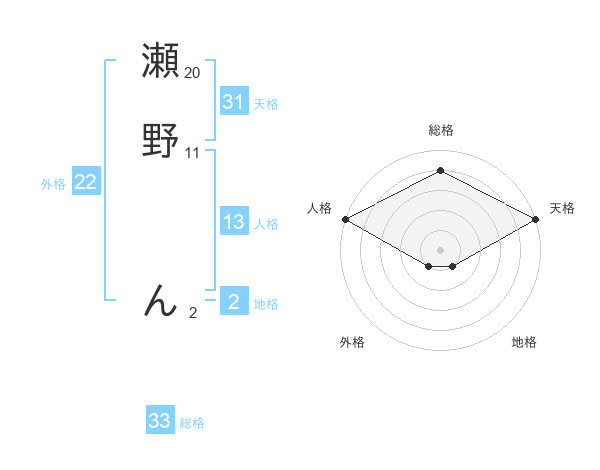 瀬野 んさんの総格は33画の4点!